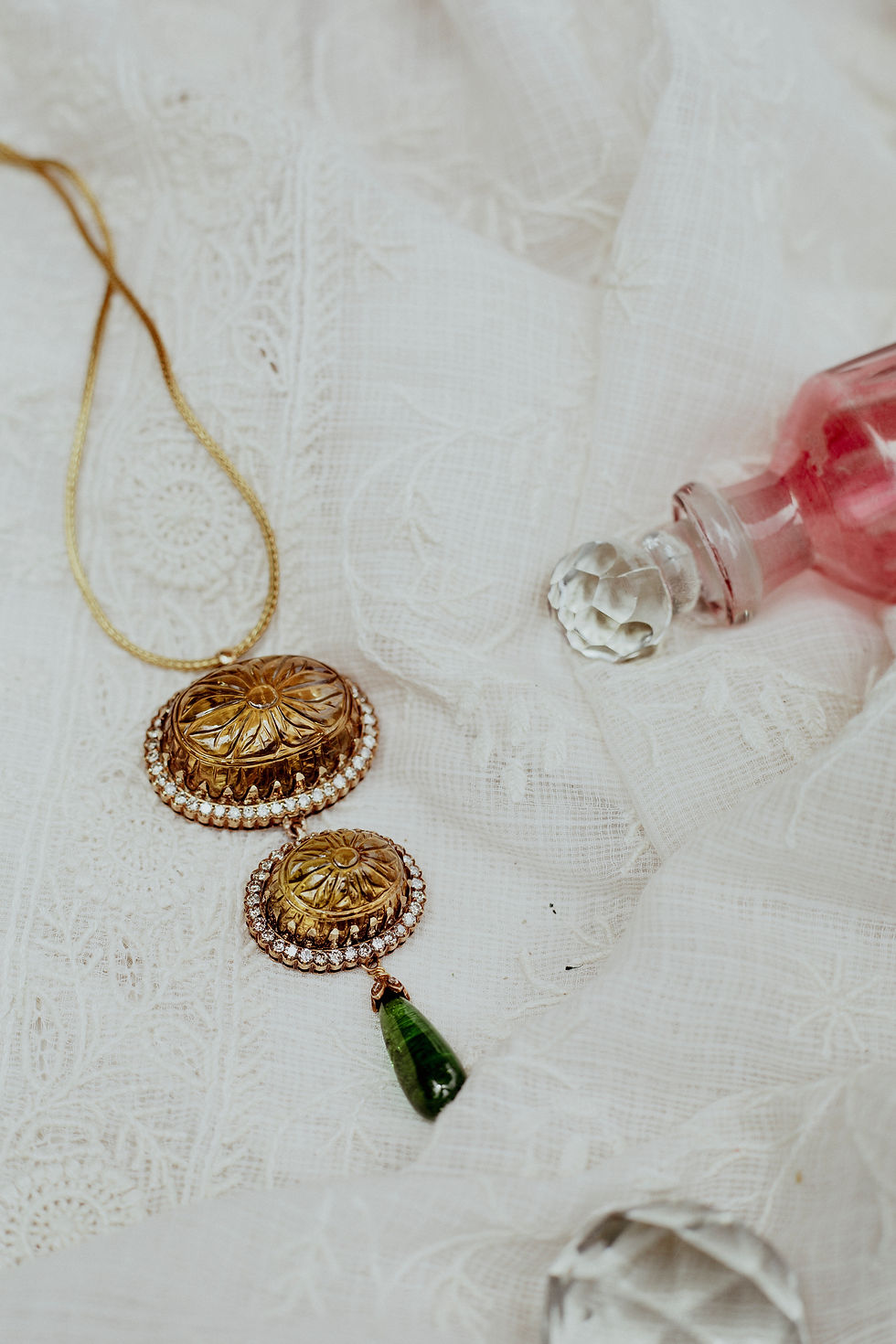 They display an innate simplicity and lightness of being, and adhere to classic and insubstantial forms. Distinctive and joyous, these ornaments are everyday objects of divinity – necklaces and ears studs and pendants and lavallières and chokers and rings and brooches – imbued with the belief that every day is a celebration of the self, and the divine self.